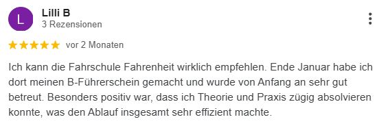 Wir sind stolz auf jeden einzelnen Fahrschüler, der mit uns seinen Traum vom Führerschein verwirklicht hat. Ihre Erfahrungen sprechen für sich – lies selbst, was Absolventen der Fahrschule Fahrenheit über ihre Zeit bei uns berichten: